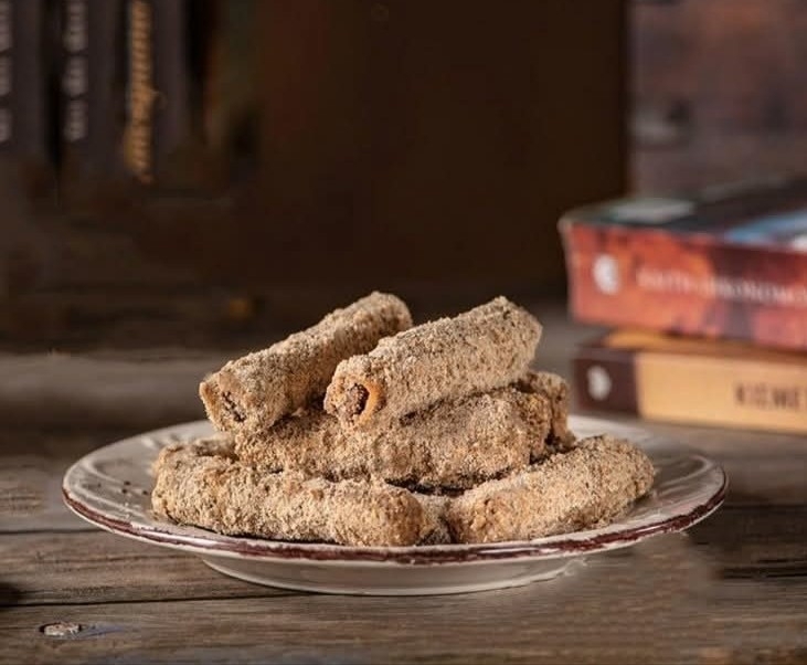 The famous Chiotian rolls "made by Augοustakis" with phyllo crust, honey and almond