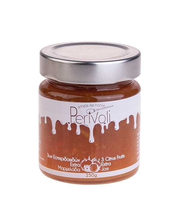 3-fruit citrus jam without added sugar, sweetened with grape juice.