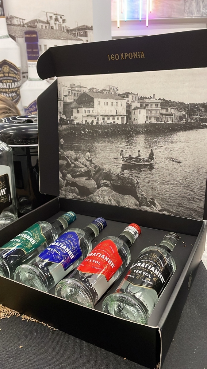Η κασετίνα περιλαμβάνει: 1 ούζο Βαρβαγιάννη μπλε 46% vol 200ml, 1 ούζο Βαρβαγιάννη πράσινο 42% vol 200ml, 1 ούζο Βαρβαγιάννη Εύζων 47% vol 200ml, 1 ούζο Βαρβαγιάννη Αφροδίτη 48% vol 200ml